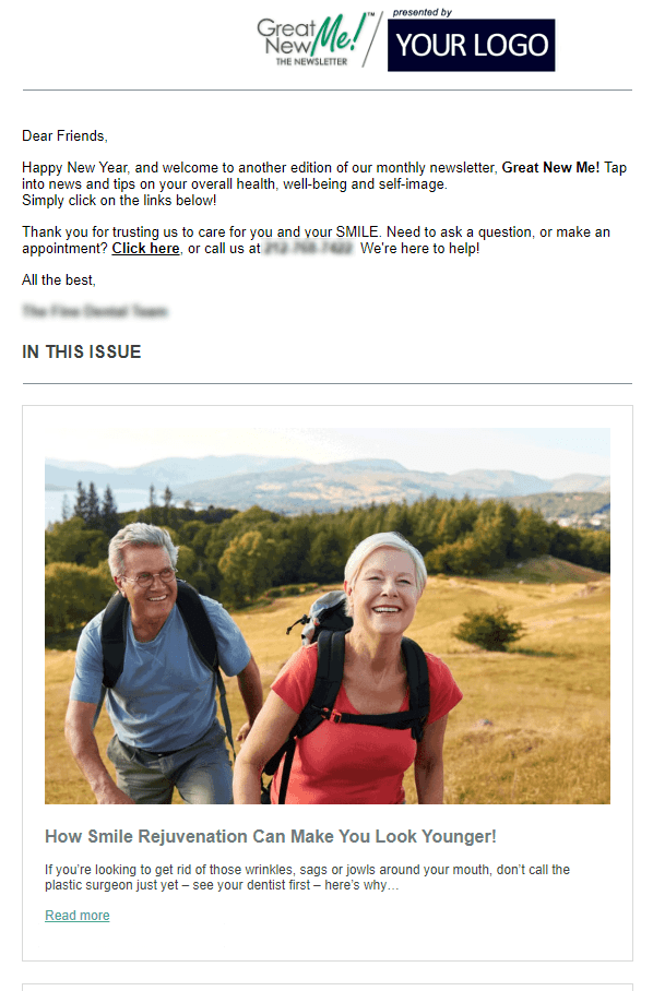 We send an attractive eNewsletter to your patients each month — the best way to keep on their radar and forge the closest relationships!